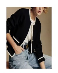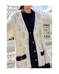 화이트블랙 배색라인 울니트가디건(2컬러)