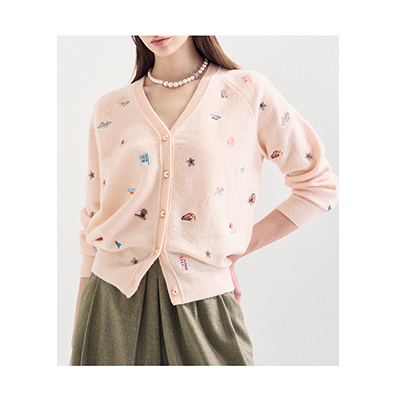 귀엽고 사랑스러운 미니 자수모티브가 들어간 디자인의 울니트가디건이에요.