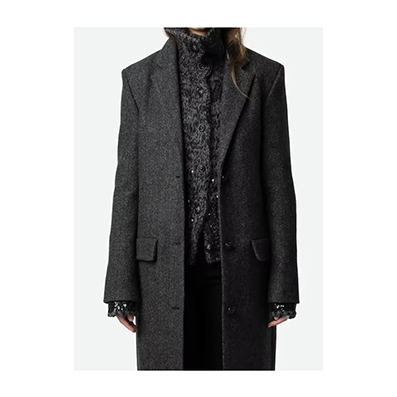 테일러드 카라에 스트레이트 H라인 실루엣이 스타일리쉬한 도톰한 헤링본 코트에요.