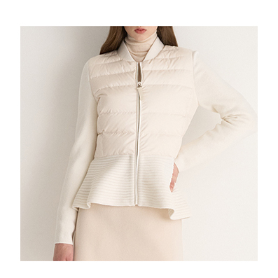 구스다운과 울혼방 니트소재로 신축성이 좋아 착용감이 편안하면서도 따스한 지퍼클로징 점퍼에요.