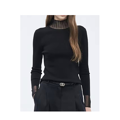 시어한 넥과 커프스소매 디자인이 고급스러운 울혼방소재의 슬림한핏의 니트폴라에요.