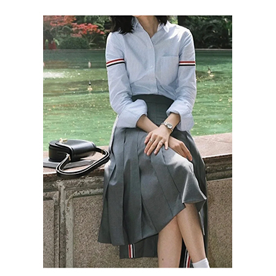 클래식한 디자인의 단정하고 고급스러운 플리츠라인 미디길이 스커트에요.