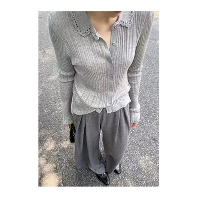 2026년SS시즌에 맞는 시어한 니트 소재의 페미닌한 카라가디건이에요.