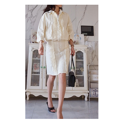 내츄럴컷프릴앤레이스 블루종&버튼스커트